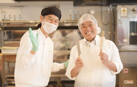 そんな発祥の地、神戸でかまぼこ作りが体験できるのが、カネテツデリカフーズ株式会社のてっちゃん工房です。オリジナルのかまぼこが作れるだけでなく、蒸したて、焼き立ての練り物がその場で味わえるのも大きな魅力。今回はかまぼことちくわが作れる2品コースを「練り物も乗り物も大好き!」という三上さんが体験!