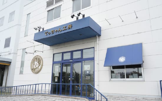 てっちゃん工房は六甲アイランドにあるカネテツ本社、六甲工場に併設。六甲ライナー「アイランドセンター駅」から徒歩15分、カネテツの他にもたくさんの食品メーカーの工場が立ち並ぶ場所にあります。大きな「ほぼカニ様」のいる「ほぼカニ神社」とカネテツの人気キャラクターてっちゃんのロゴが大きくあしらわれた本社ビルが目印。