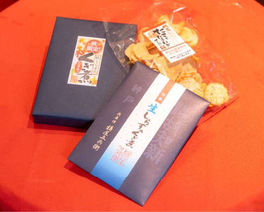 ここまでずっと楽しい解説でツアーを案内してくれた高田さんの営む、いかなごのくぎ煮の老舗・樽屋五兵衛本店がツアーのゴール。うれしいおみやげももらって、海産物のお買い物も自由にできます。「知らない兵庫津をたくさん知ることができて楽しかったです!」とウラリエさん。
