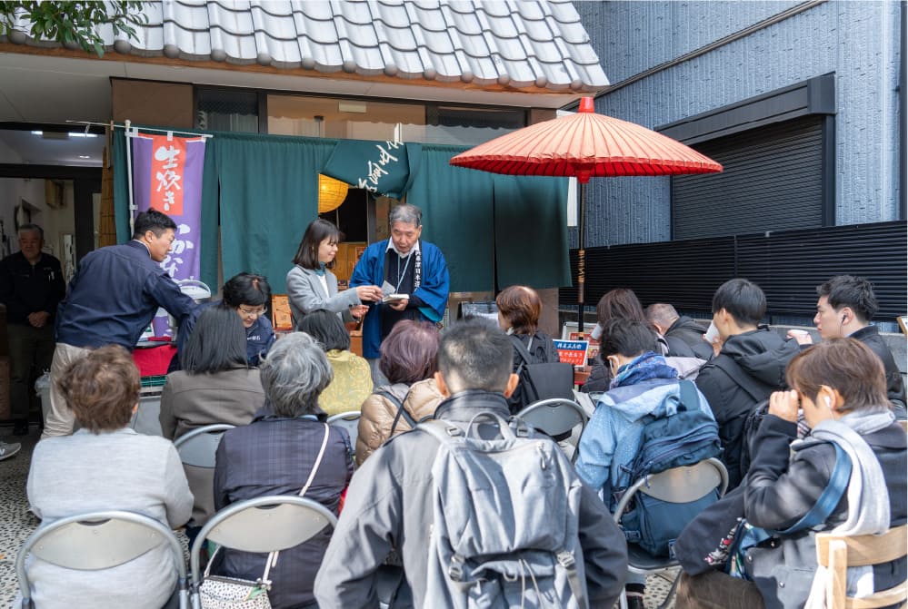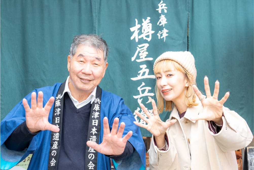 ここまでずっと楽しい解説でツアーを案内してくれた高田さんの営む、いかなごのくぎ煮の老舗・樽屋五兵衛本店がツアーのゴール。うれしいおみやげももらって、海産物のお買い物も自由にできます。「知らない兵庫津をたくさん知ることができて楽しかったです!」とウラリエさん。