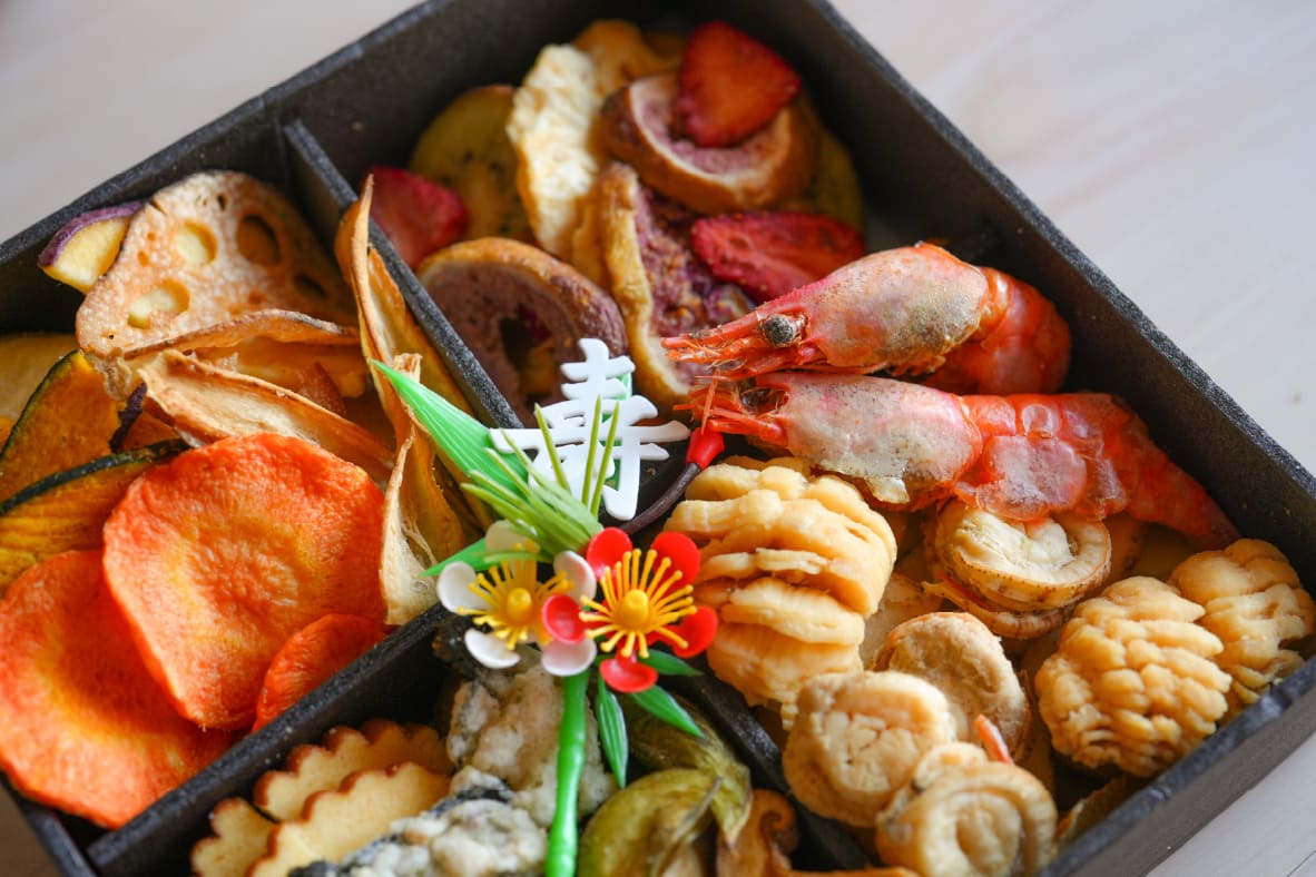 「おせち料理も全部!?すごい!」とウラリエさんも驚きのおせちチップス。