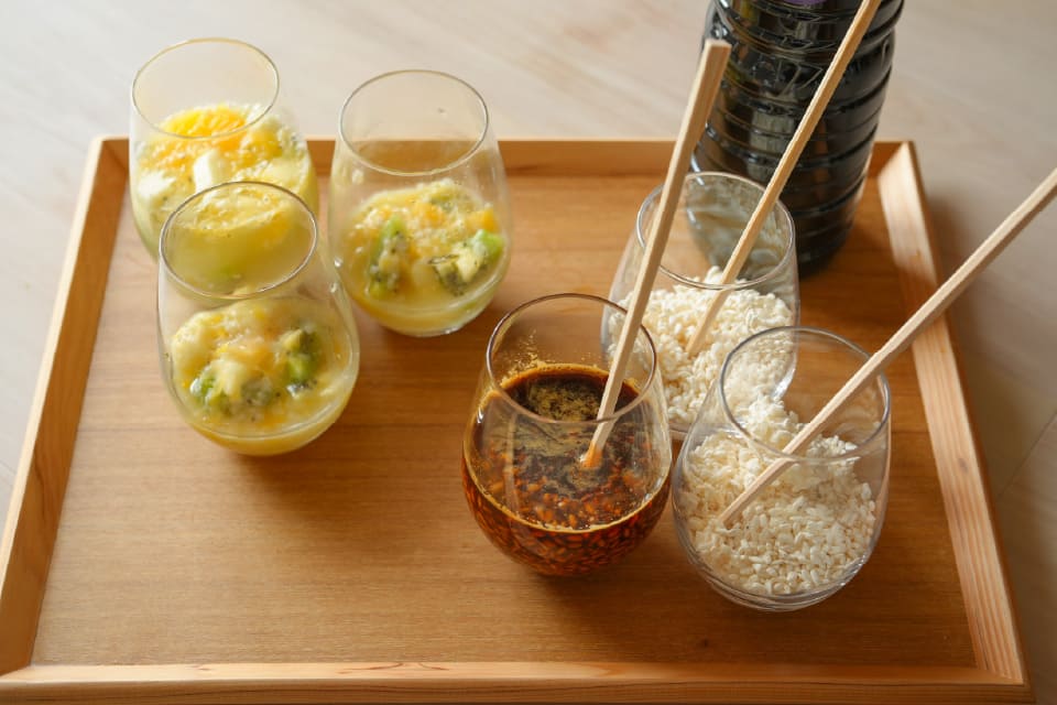 フルーツ大福づくりに続いて、醤油こうじ作りも体験させていただきました。参加した人から「満足度が高い」と毎回人気の体験イベントですが、その理由は使う素材の安全性とおいしさ。醤油こうじは神戸唯一の醤油蔵である池本醤油の醤油、米麹は自社農園で収穫したお米を姫路の麹屋さんに依頼して作ったものだそう。醤油こうじはこの2つの素材を混ぜ合わせるだけ。ただし、できあがるのは1か月後以降なので、それまでは自宅の冷蔵庫で静かに寝かせておきます。「刺し身を漬けにしてもいいし、煮込み料理に使ったら柔らかくなって美味しいし、卵かけご飯にしても、何してもおいしいですよ」と鯛社長のアドバイスに「うわー、何に使うか悩むけど、めっちゃ楽しみすぎる!」とウラリエさん。